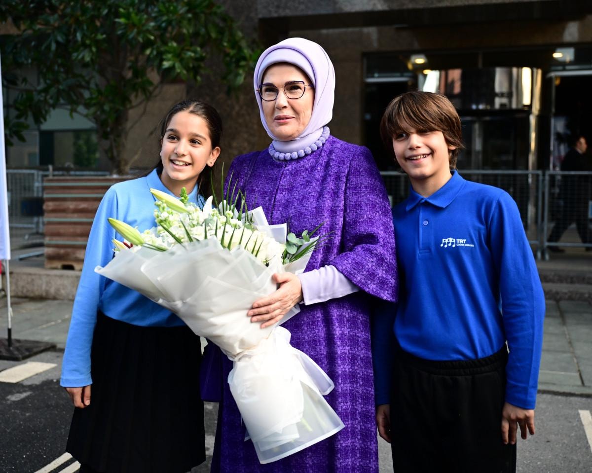 Emine Erdoğan, Haliç Kongre Merkezi'nde "Dijital Çağda Çocuk Medyası: Aileyi Güçlendirmek, Değerler İnşa Etmek" başlığıyla düzenlenen TRT Uluslararası Çocuk Medyası Zirvesi'ne katıldı.