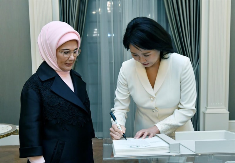 Cumhurbaşkanı Recep Tayyip Erdoğan'ın eşi Emine Erdoğan, Türkiye'ye resmi ziyaret gerçekleştiren Güney Kore Devlet Başkanı Lee Jae Myung'ın eşi Kim Hea Kyung ile Cumhurbaşkanlığı Millet Kütüphanesi'ni ziyaret etti.