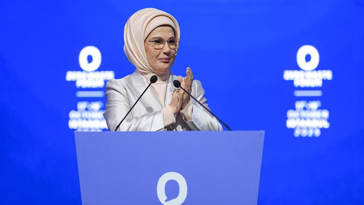 Emine Erdoğan, "Fakat bugün en çok, savaşların çevreye verdiği tahribatı, yeryüzüne bıraktığı derin yara izlerini, konuşmalıyız. Savaşların, iklim değişikliğiyle mücadelemizdeki kazanımlarımızı, nasıl sıfır noktasına gerilettiğini anlatmalıyız! Bunun en acı örneği, bugün Filistin'de yaşanıyor.