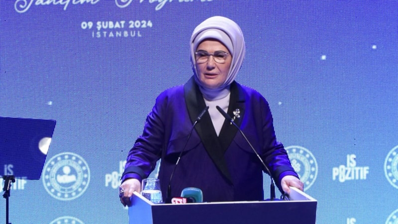 İstanbul'da düzenlenen “İş Pozitif” tanıtım programında konuşan Emine Erdoğan, “Güçlü bir Türkiye üç temel üzerinde yükselir; güçlü kadın, güçlü aile ve güçlü toplum” dedi. Erdoğan ayrıca, kadınların istihdama katılması ile dünya genelinde yoksulluğun azalması arasında bir paralellik bulunduğunu ifade etti.