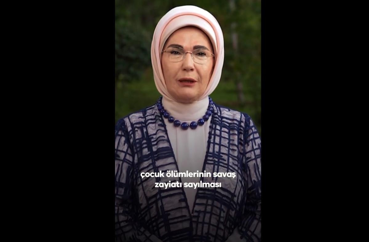 Emine Erdoğan, gönderdiği mesajda Gazze ve Ukrayna'da yaşanan savaşın arasında mücadele veren çocuklara da değindi.