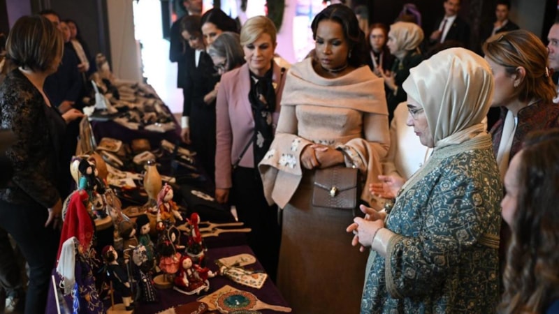Lider eşlerine, coğrafi işaretli ürünlerden Gaziantep baklavası, Aydın inciri, Malatya kayısısı, Ezine peyniri, Antakya künefesi gibi birçok ürün ikram edildi.