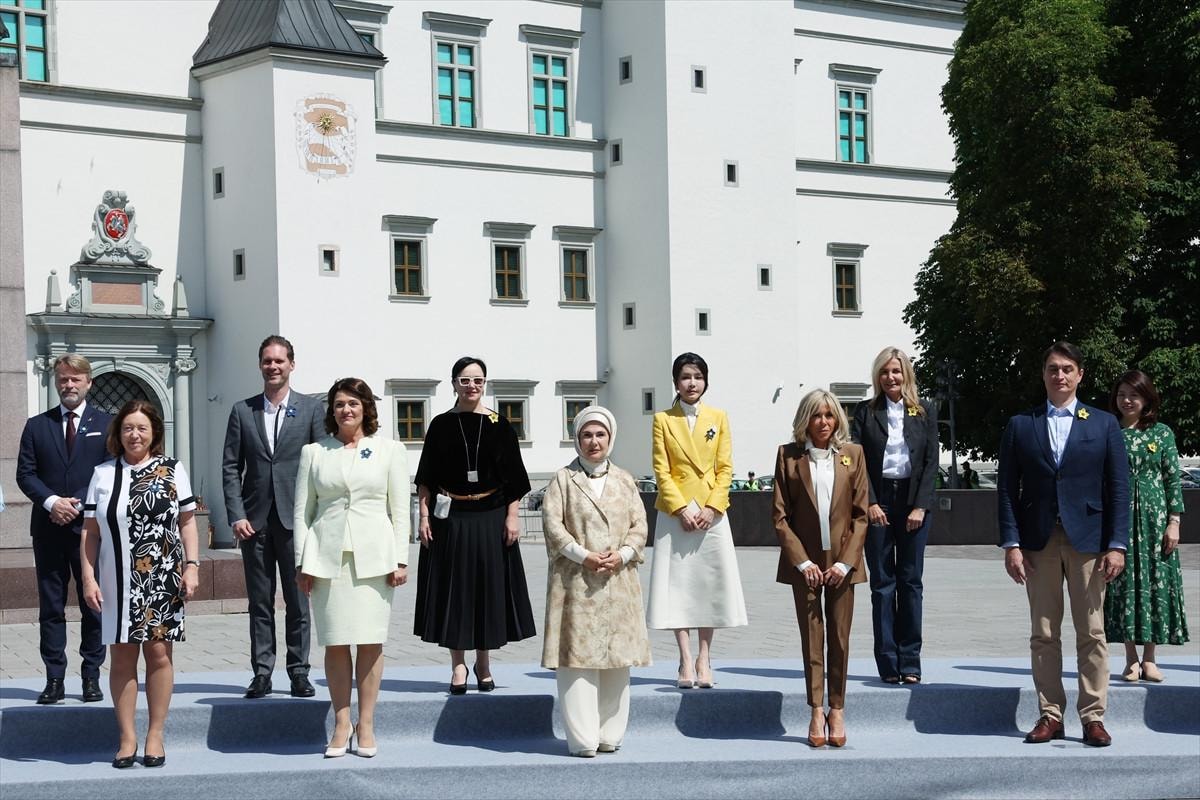 Ukrayna Merkezi'ndeki programın ardından Litvanya Büyük Dükler Sarayı'nı da ziyaret eden lider eşleri, sarayın önündeki toplu fotoğraf çekiminin ardından buradaki müzeyi gezdi.