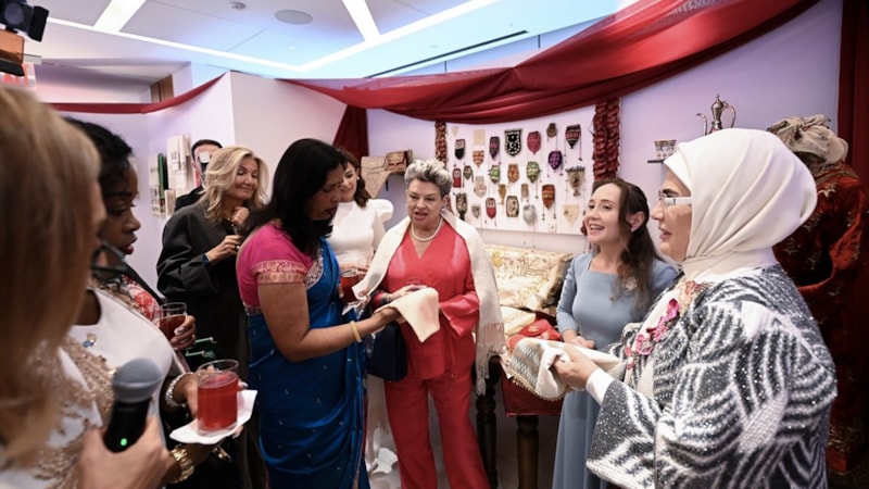 Lider eşleri ise temasta bulunan Emine Erdoğan, New York'taki Türkevi'nde Olgunlaşma Enstitüleri tarafından düzenlenen "Gelin Hazineleri: Osmanlı ve Anadolu Çeyizlerinde Bir Yolculuk" programına ev sahipliği yaptı.