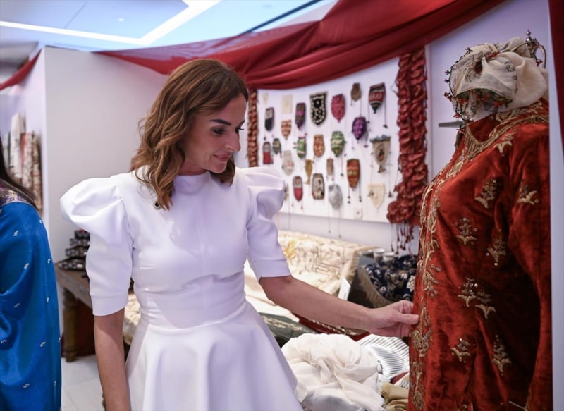 Çeyizler, gelin alayı ve gelin hamamı gibi geleneklerin sergilendiği alanda Emine Erdoğan, kültürel mirasın gelecek nesillere taşınmasının öneminden bahsetti.