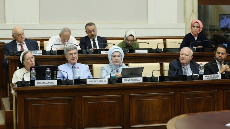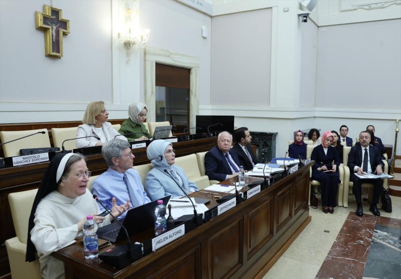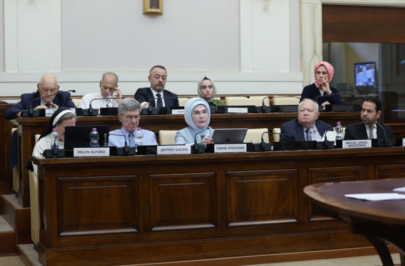 Vatikan'da Papalık Sosyal Bilimler Enstitüsü'nde "Kardeşlik Temelli Ekonomi: Etik Çok Taraflılık" başlığıyla düzenlenen konferansa katılan Emine Erdoğan, panelde konuşma gerçekleştirdi. "Dünya 5'ten büyüktür" mesajı veren Erdoğan, "Bu mesaj, dünyanın ‘geride kalmış' mazlumlarının manifestosudur." dedi.