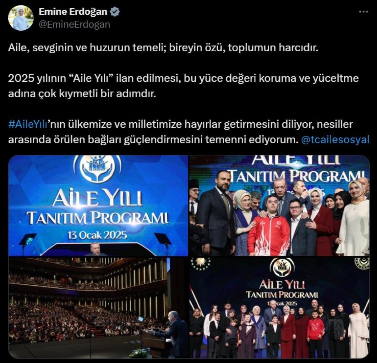 Cumhurbaşkanı Recep Tayyip Erdoğan'ın eşi Emine Erdoğan'dan 'Aile Yılı' paylaşımı...