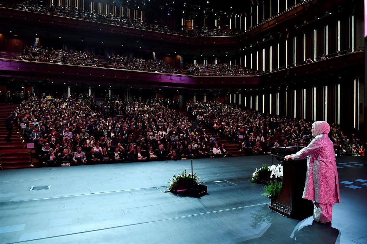 Emine Erdoğan, Konya'da başlatılan "İlk Adım Ebe Gebe Okulu" projesiyle yüzde 50 olan sezaryen oranlarının, verilen eğitimlerle yüzde 33'lere kadar düşürüldüğünü, bilinçlendirme ve farkındalığı artırmaya yönelik faaliyetlerin etkisinin bu örnekte çok net görülebildiğini söyledi.