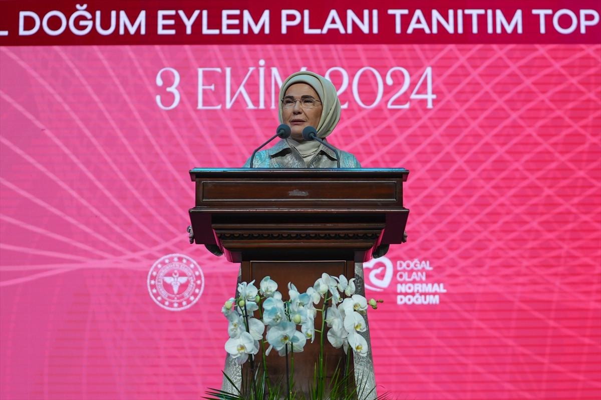 Sağlık Bakanlığının 2008'den itibaren normal doğumu teşvik amacıyla kıymetli projeleri hayata geçirdiğini, Türkiye'yi de tehdit eden bu küresel soruna çözüm alternatifleri geliştirdiğini anımsatan Emine Erdoğan, şunları kaydetti: