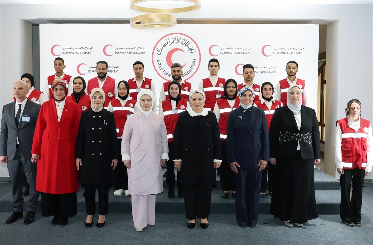 Ziyarete ilişkin sosyal medya hesabından da paylaşımda bulunan Emine Erdoğan, Mısır Kızılayı'nın faaliyetleri ve Gazze için organize edilen yardımlarla ilgili bilgi aldığını belirtti.