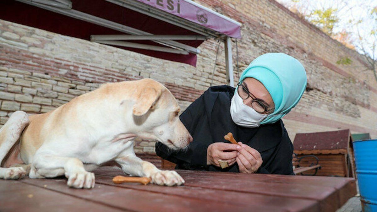 Emine Erdoğan, Twitter hesabından "Satın alma sahiplen" etiketiyle yaptığı paylaşımda, 4 Ekim Hayvanları Koruma Günü'nde Fatih'teki Yedikule Hayvan Barınağı'ndan sahiplendiği "Leblebi" isimli köpeğin fotoğraflarına yer verdi.