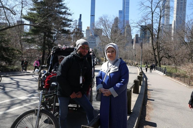 Emine Erdoğan, BM Genel Kurulu öncesi yani 29 Mart günü, kızı ve torunuyla Central Park'a yürüyüşe çıktı.
