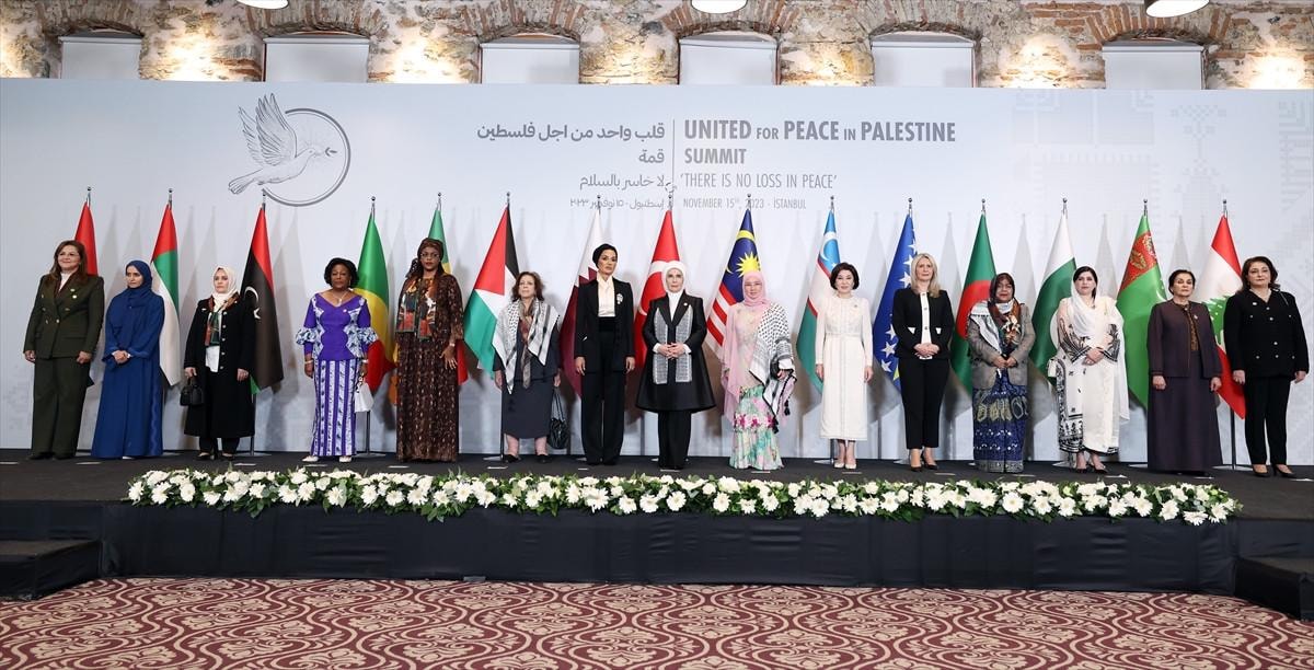 Bu vesileyle belirtmek isterim ki 15 Kasım'da İstanbul'da, devlet ve hükümet başkan eşlerinin ve ülke temsilcilerinin katılımıyla, ateşkesin sağlanması ve insani yardımın eksiksiz bölgeye ulaştırılması için uluslararası kamuoyunu harekete geçmeye çağırmak amacıyla düzenlediğimiz zirveyi, sözden eyleme taşımak niyetindeyiz. Önce ateşkesin sağlanması, ardından Filistinlilerin yıkılan şehirlerini yeniden inşa etmek için somut girişimler üretilmesi amacıyla bir inisiyatif haline getirmek için girişimlerimiz sürüyor.