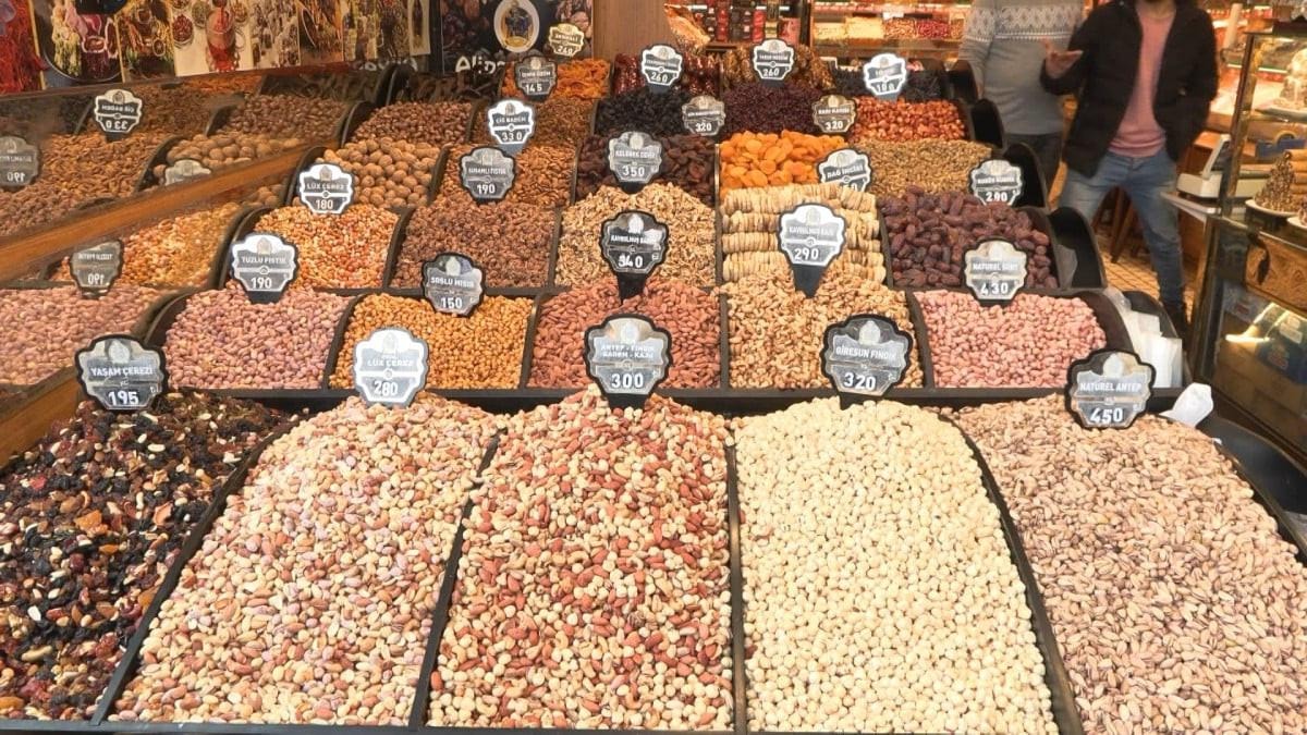 Şu günlerde biraz yoğunluk var çerezde var o da yani. Bir sene boyunca bekledik başladı bir yoğunluk. Çerez satıyoruz. Karışık çerez tercih ediliyor, fındık tercih ediliyor, antep fıstığı tercih ediliyor, soslu mısır, tuzlu fıstık, hurması, inciri, kayısısı hepsi tercih ediliyor. Fiyatlar her zamanki gibi aynı. 300 liraya çerez, 500 liraya antep fıstığı, 430 liraya var fıstık bu şekilde.