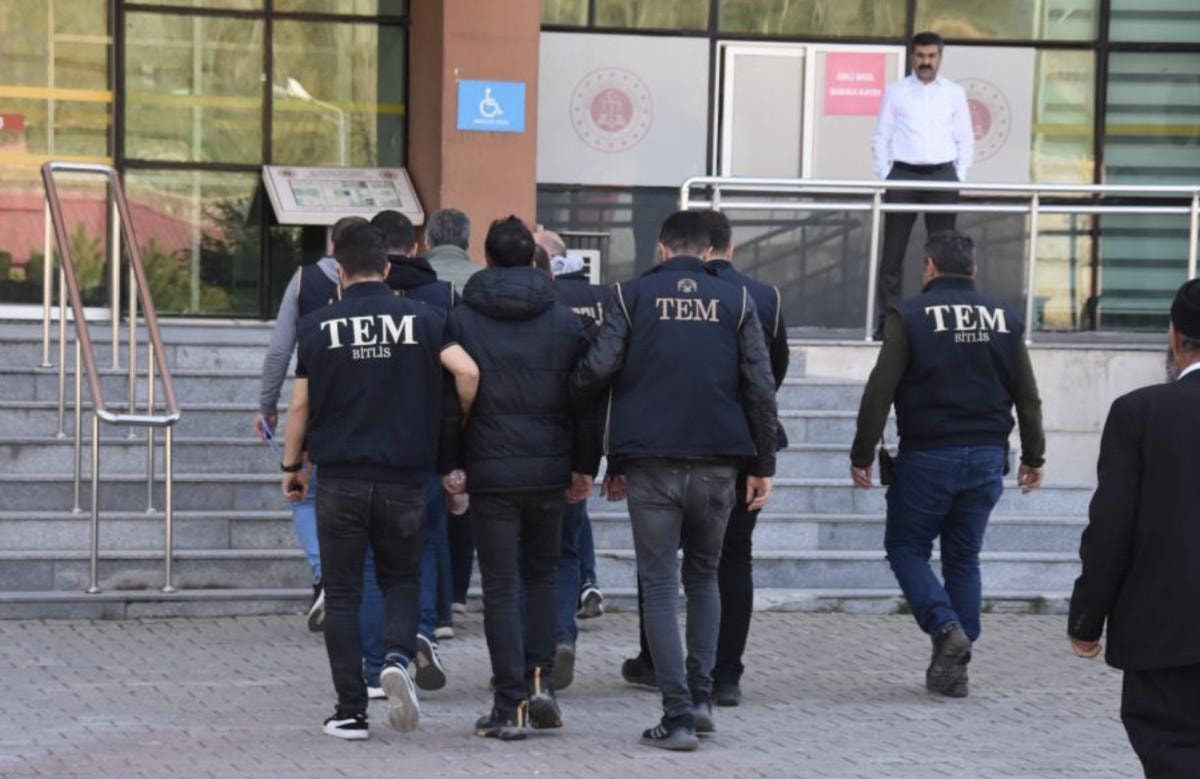 Emniyetteki işlemleri tamamlanan polis memurları V.K., S.B. ve O.Z., sağlık kontrolünden geçirildikten sonra geniş güvenlik önlemleri altında bugün Bitlis Adliyesi'ne getirildi.