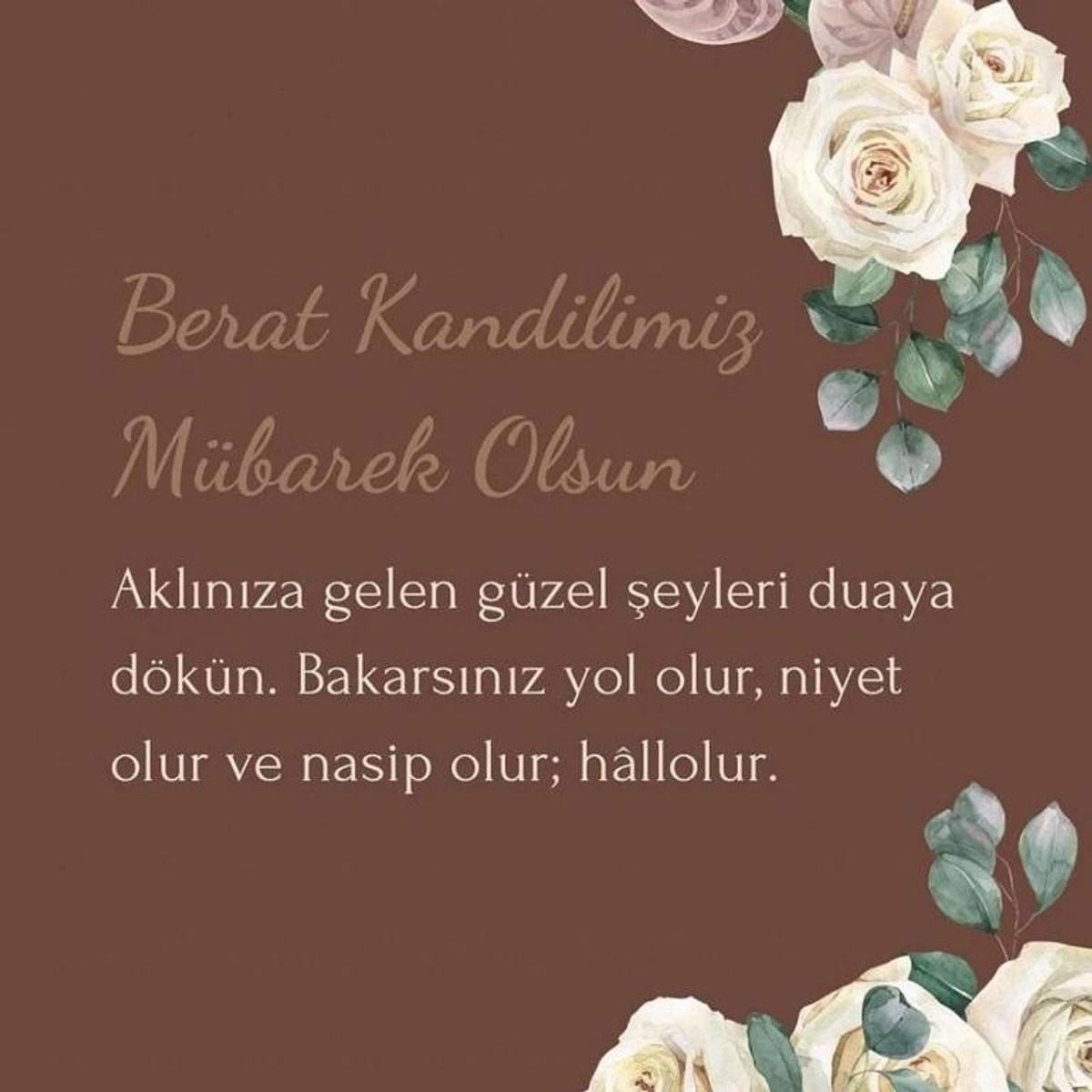 Sana karanfilin sadakatini, sümbülün bağlılığını, menekşenin tevazusunu, çiğdemin neşesini, lalenin gururunu, İslam'ın nurunu buket olarak gönderiyorum. Berat Kandilin mübarek olsun…