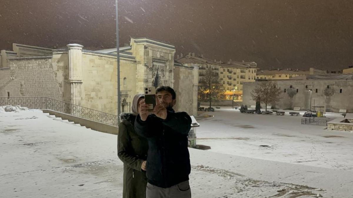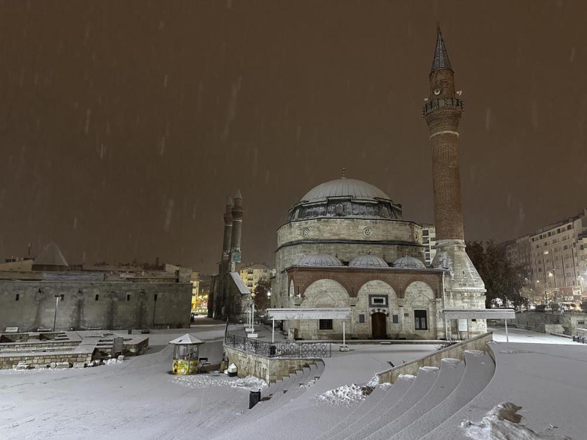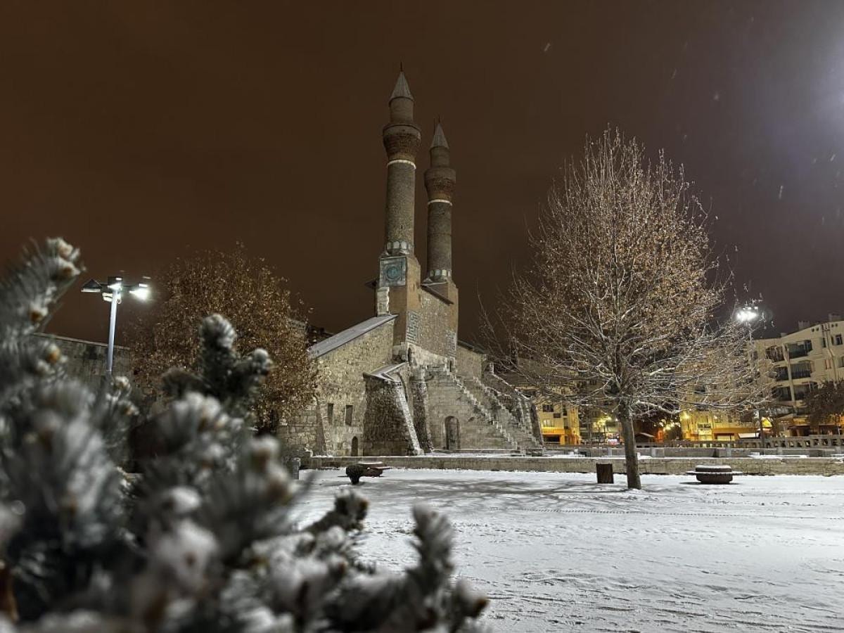 Meteorolojinin uyarılarının ardından Sivas’ta gece saatlerinde yoğun kar yağışı etkili oldu. Termometrelerin sıfırın altında 1 derece gösterdiği kentte etkili olan kar yağışı tarihi kent meydanında masalsı görüntüler sundu.