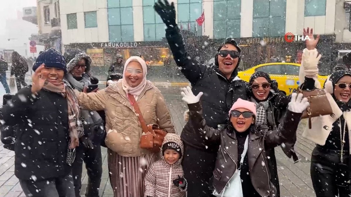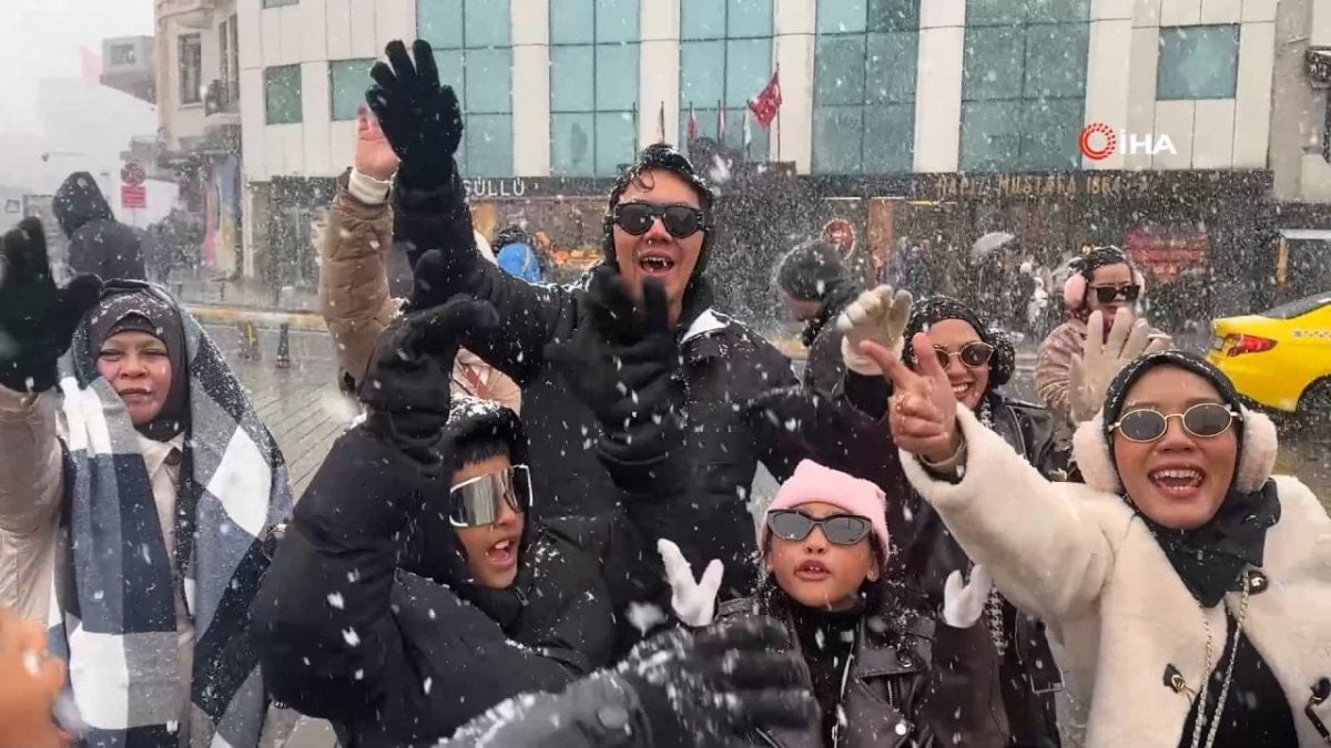 - Taksim'de aniden bastıran kar, yeni yılın ilk gününde Endonezyalı turistlere unutulmaz anlar yaşattı.
