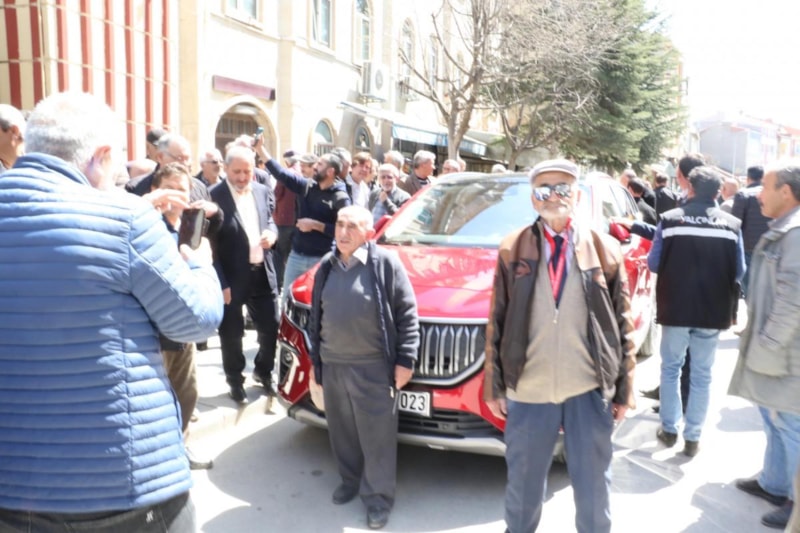 Enerji ve Tabii Kaynaklar Bakanı Fatih Dönmez, seçim çalışmalarını yerli otomobil Togg ile yaparken, gittiği yerlerde vatandaşlar, aracın önünde hatıra fotoğrafı çektirip, içini inceledi.