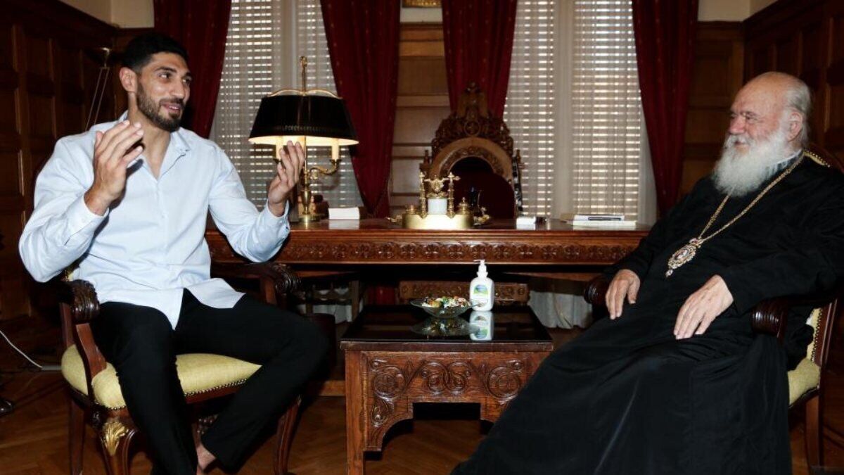 Kanter, bu paylaşımının ardından son olarak Yunanistan Başpiskoposu İeronimos'u ayakta karşıladı ve önünde eğildi.