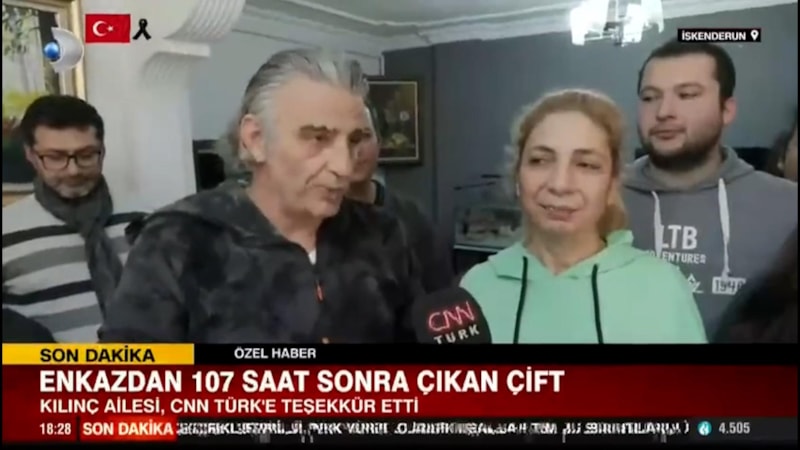 Depremin üzerinden 107 saat geçtikten sonra İHH tarafından kurtarıldıklarını belirten Kılınç, "İHH görevlilerinden Allah razı olsun, onların emeğini ailece ödeyemeyiz." ifadelerini kullandı.