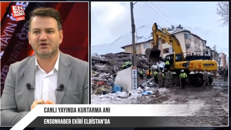 Zorlu hava şartlarının ve yoğunluğun ardından bölgeye giden muhabirimiz Yasin Koçtepe, canlı yayında son durumu aktardığı sırada, ekiplerin enkaz altındaki bir vatandaşa ulaştıklarına şahit oldu.