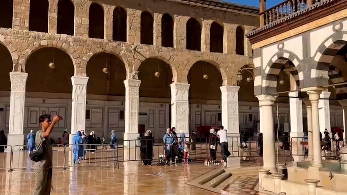 - Rejim sonrası Emevi Camii avlusuna ayakkabıyla girilmiyor, ezan dinlendi ve namaz kılındı.
