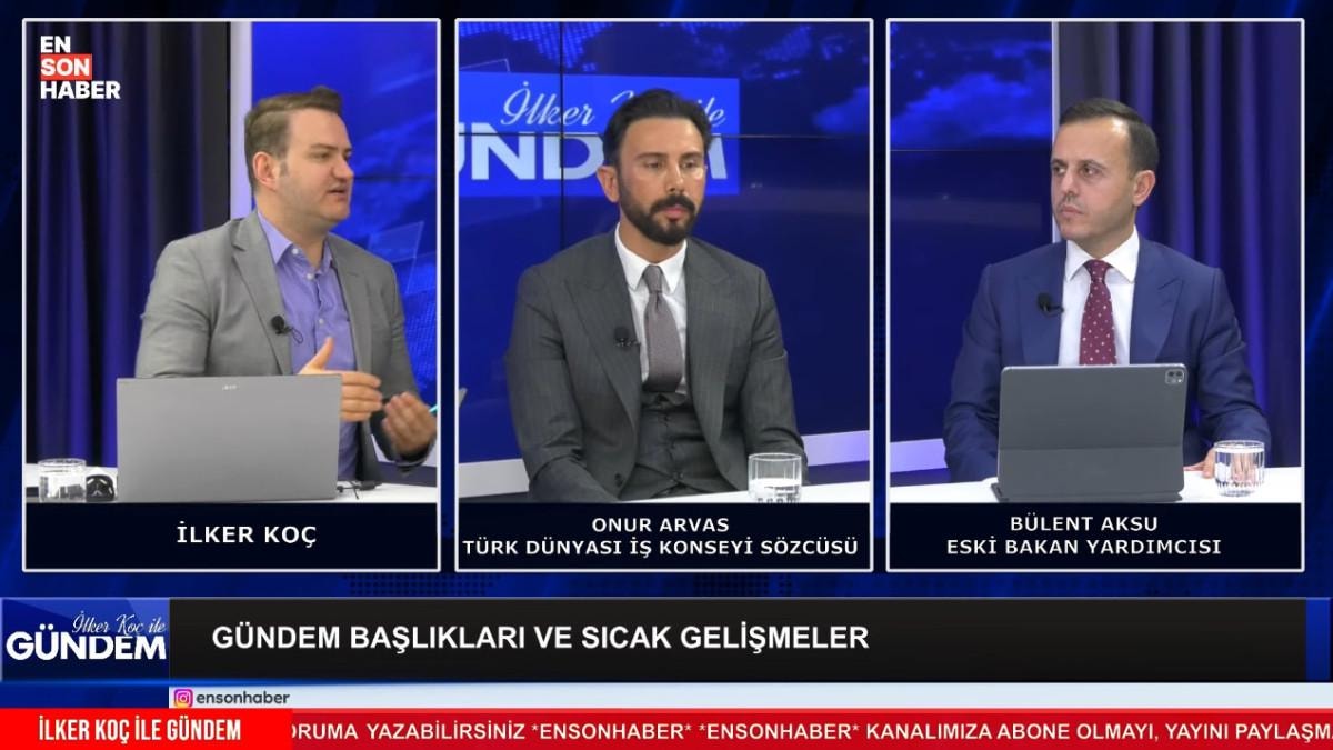 Türk Dünyası İş Konseyi Sözcüsü Onur Arvas ve eski bakan yardımcısı Bülent Aksu, Koç'un stüdyo konuğu oldu.