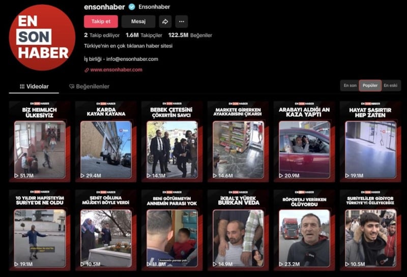 Ensonhaber, Instagram ve TikTok'ta da milyonlar tarafından takip ediliyor.