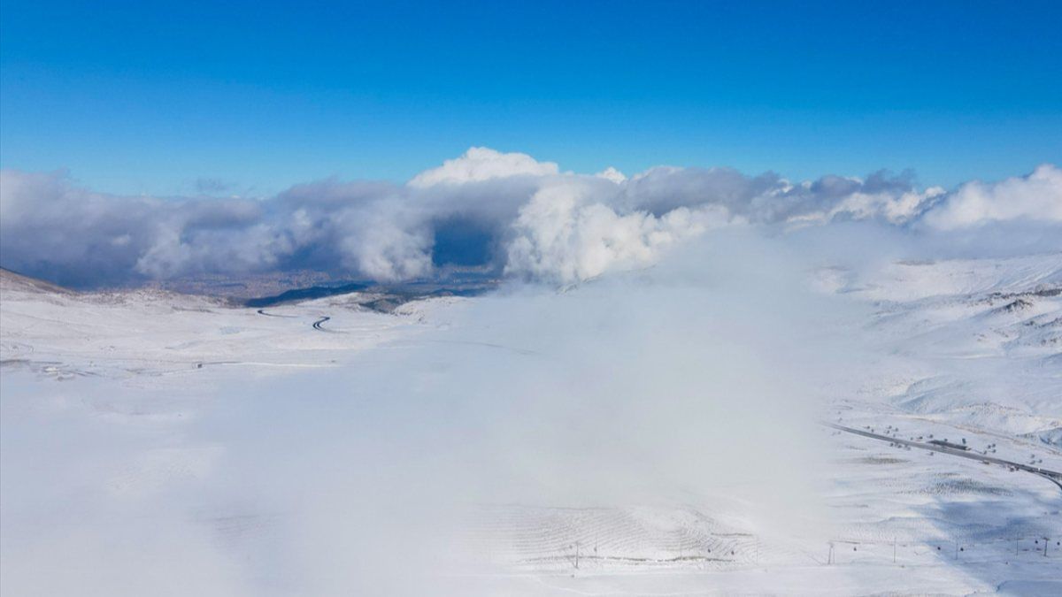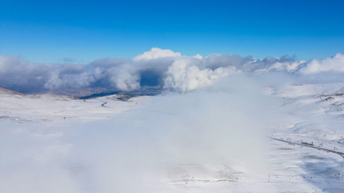 Türkiye'nin önemli kış turizm merkezlerinden Erciyes'te bir süredir etkili olan kar yağışı dağı beyaza bürüdü.