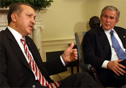 Başbakan Erdoğan, ABD Başkanı Bush'la görüşmesinde, 17 Ekim tarihinde TBMM'nin, Hükümete sınır ötesi operasyon görevlendirmesi yaptığını, böyle bir operasyon gerçekleştirilirse bunun tamamiyle terör örgütü PKK'YA YÖNELİK OLACAĞINI, asla sivilleri kapsamayacağını söyledi. Erdoğan, terör örgütü PKK'ya yönelik mücadelede, TÜRK ve AMERİKAN GENELKURMAYLARI arasında ortak çalışma gerçekleştirileceğini belirtti.