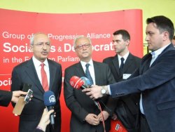 Kemal Kılıçdaroğlu ile Avrupa Parlamentosu Sosyalist Grup Başkanı Hannes Swoboda ortak bir basın toplantısı düzenledi. Swoboda, CHP Genel Başkanı Kemal Kılıçdaroğlu ile düzenlediği ortak basın toplantısında kendisine yönelik sorular bitince, bir kısmına Kılıçdaroğlu'nun da katıldığı Sosyalist Grup toplantısına geri döndü.