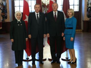 Temasları kapsamında Letonya'da bulunan Cumhurbaşkanı Recep Tayyip Erdoğan, Letonya Cumhurbaşkanı Andris Berzins tarafından resmi törenle karşılandı.