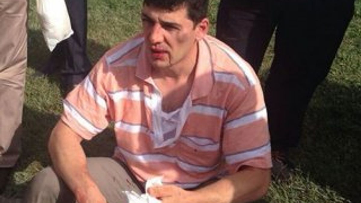 "Bizim damat yurt dışında görevli. Görevine dönüşü gecikecek şimdi. Dün (önceki) akşam, olaydan sonra, askeri personel olduğu için askeri hastaneye götürdük. Öncelikle beyin tomografisi çekildi çünkü sadece kafasına vurmuşlar. Tekmelerle, sürekli kafasına... Neyse ki beyninde bir hasar oluşmamış. Hayati risk olabileceği söylenmişti önce, neyse ki burun kırığı ile atlattı. Sabaha karşı bitti ameliyatı. Burnundan ameliyat oldu. Biz de herkes gibi gerekli yasal işlemleri başlattık. Avukatlarımız adli süreci yürütecek."