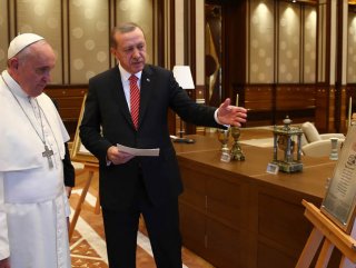 Katolik aleminin ruhani lideri Vatikan Devlet Başkanı Papa Franciscus'un Türkiye'ye gerçekleştirdiği ziyaretten ilginç detaylar da objektiflere yansıdı. Yeni Cumhurbaşkanlığı Sarayı'nın ilk yabancı konuğu olan Papa'ya, Cumhurbaşkanı Erdoğan Fatih Sultan Mehmet'in ahidnamesini gösterdi.
