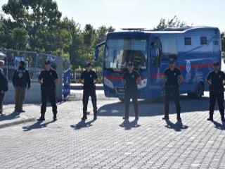 Duruşma salonu çevresinde 270 polis ile 330 jandarmanın görev yaptığı öğrenildi. Çanakkale, Aydın ve Antalya'dan da takviye çevik kuvvet ve özel harekat polislerinin kente geldiği bildirildi.