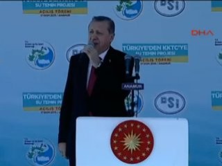 "KKTC'nin 50 yıllık içme suyu ve tarımsal su ihtiyacını bu projeyle sağlıyoruz. 1 milyar 600 milyon liraya mal olan bu proje bir hayalin gerçekleşmesini ifade ediyor. KKTC'ye denizin altından geçen borularla su taşınmasını gerçekleştirmiş bulunuyoruz. İşte gerçek millilik budur. Lafla olmuyor bu iş.