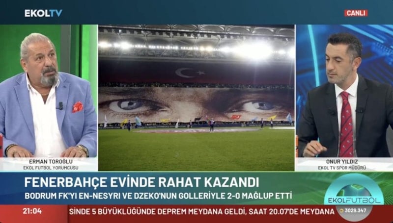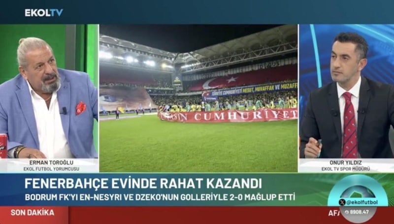 Ekol TV yayınında Fenerbahçe-Bodrumspor maçını yorumlayan sunucu Onur Yıldız ile birlikte Toroğlu, Atatürk'ün Türkiye için kendisini feda ettiğini söyledi.