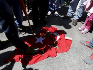 Türk Başkonsolosluğu önünde de toplanan bir grup Ermeni gösterici, Türk bayrağı yaktı.