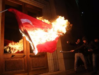 Sözde soykırım yalanı bahanesiyle Erivan'da sokaklara dökülen Ermeniler, Türk bayrağını yaktı.