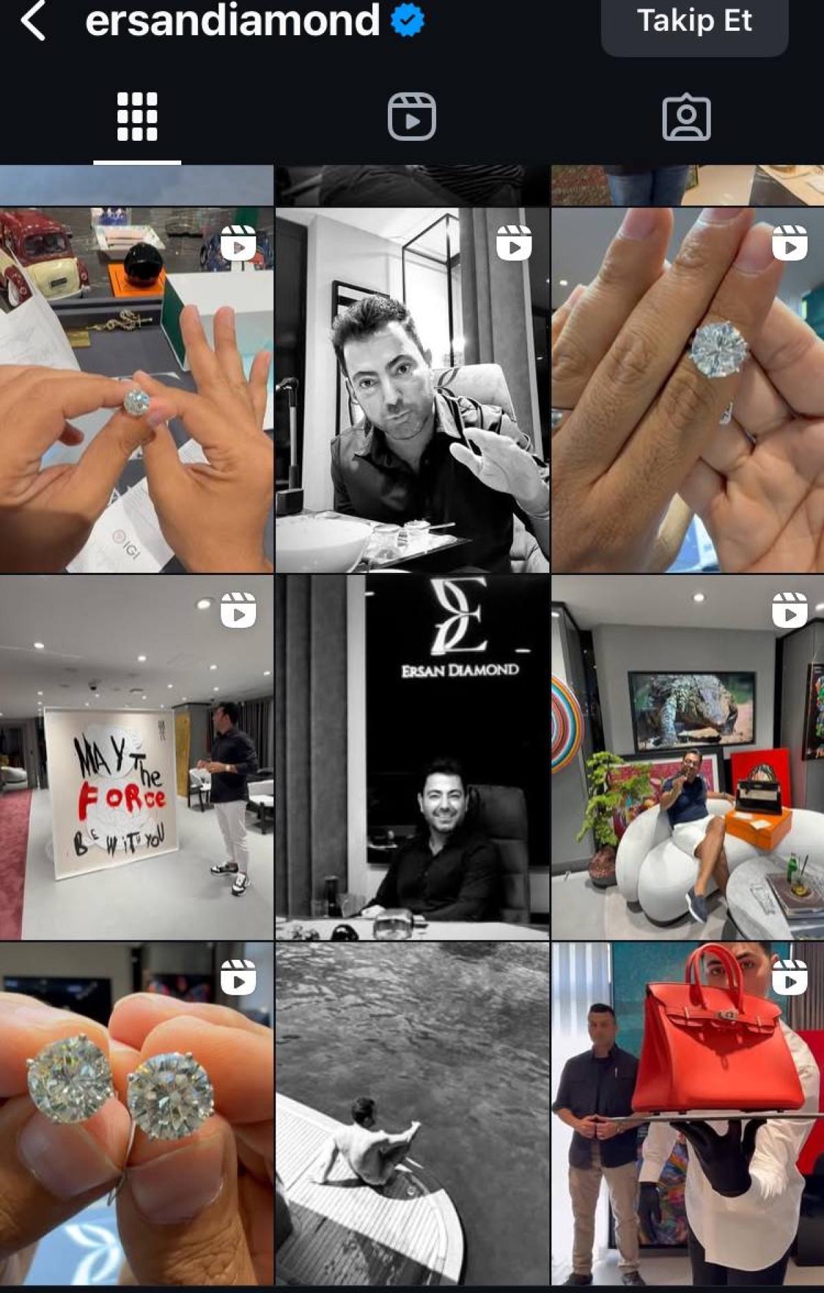 Daha önce usulsüz çakarlı araç kullandığı da ortaya çıkan Ersan Diamond ünlülere pahalı mücevher, çanta, saat ve tablo gibi lüks takı ve aksesuarlar satıyordu.