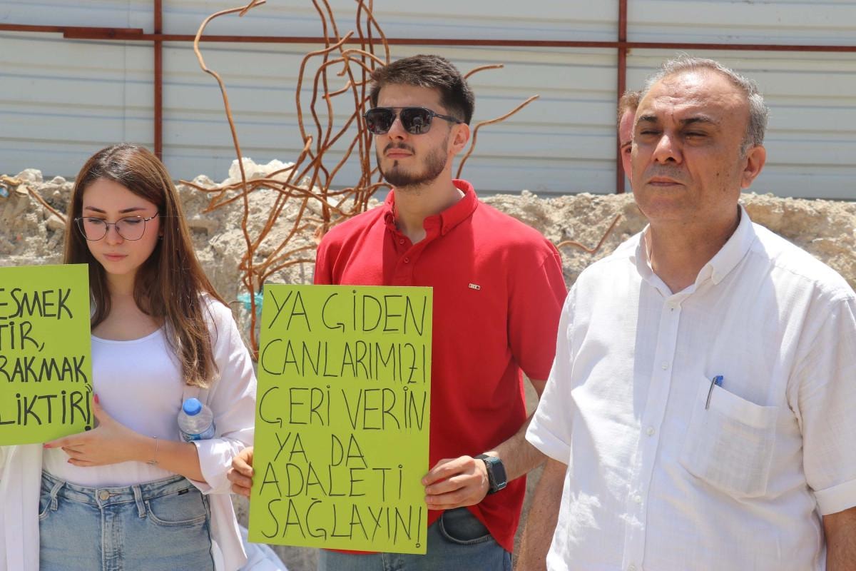 Duruşma sonunda yakınlarını kaybettikleri enkazın başına giden aileler, sanıkların tutuklanmamasına tepki gösterdi.