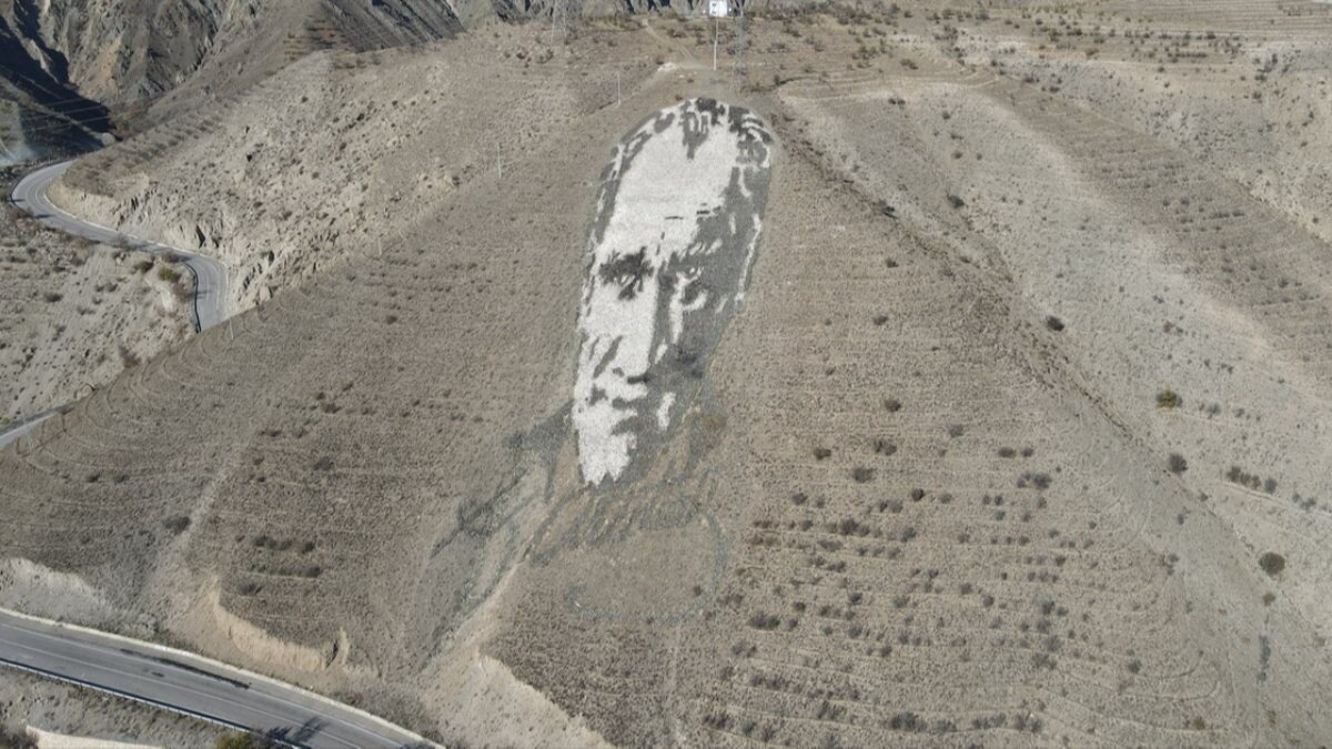 600 ton taş ve 210 ton harç ile 200 ton boya kullanan ekip, 176 metre boyunda Atatürk portresini gerçekleştirdi.