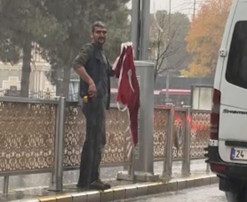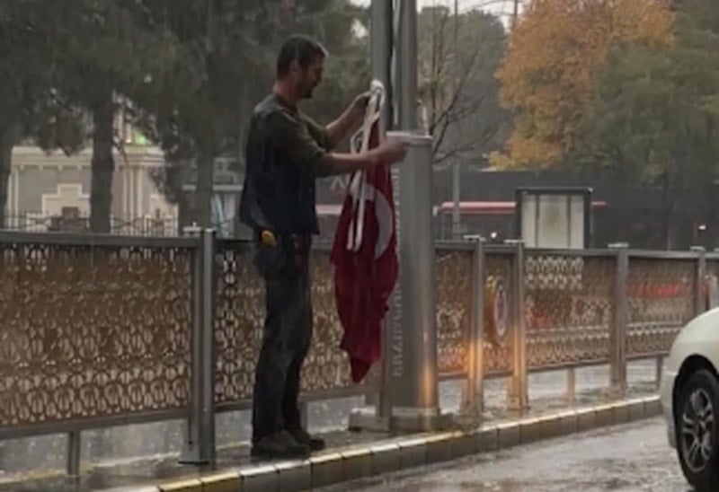 Bir vatandaşın bayrağa gösterdiği hassasiyet, izleyenleri duygulandırdı...