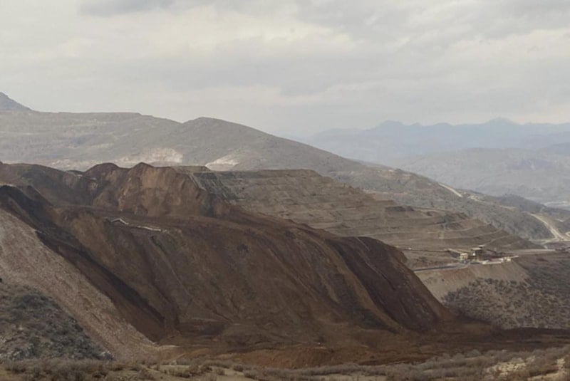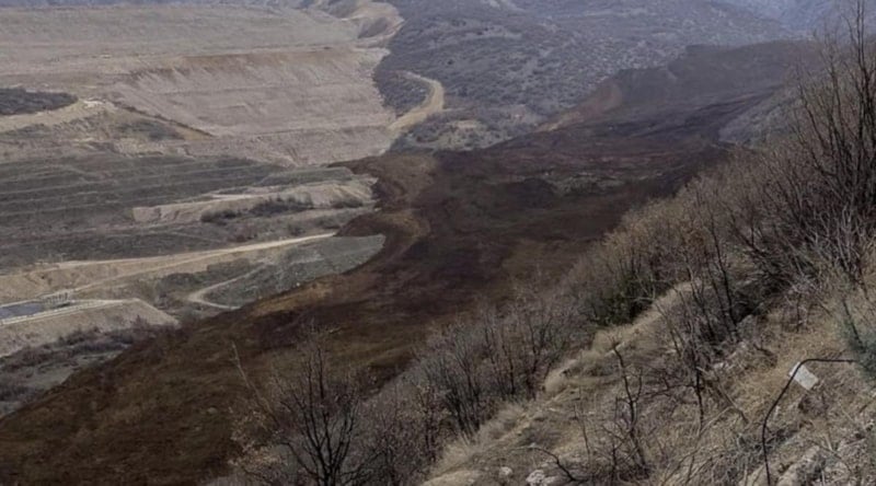 Altın madeninden çıkartılan toprakların depolandığı büyük alanda toprak kayması yaşandı.