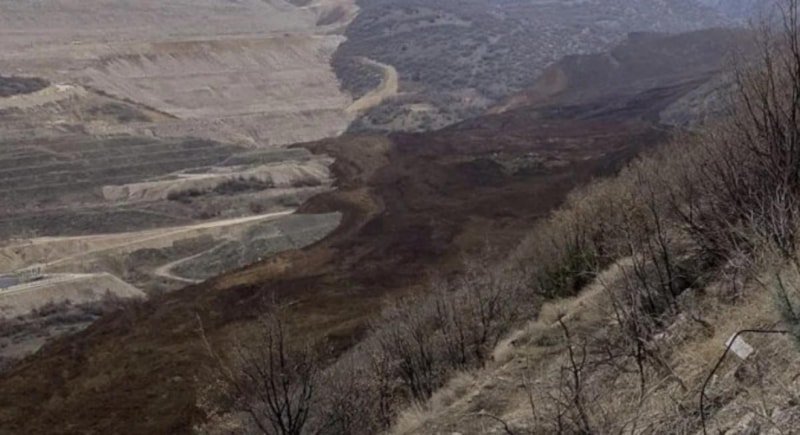 Altın madeninden çıkartılan toprakların depolandığı büyük alanda toprak kayması yaşandı.