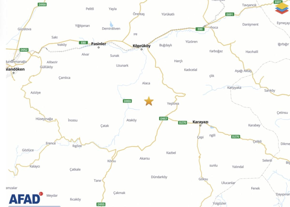 Saat 16.56 sıralarında meydana gelen deprem, 6.92 kilometre derinlikte kaydedildi.
