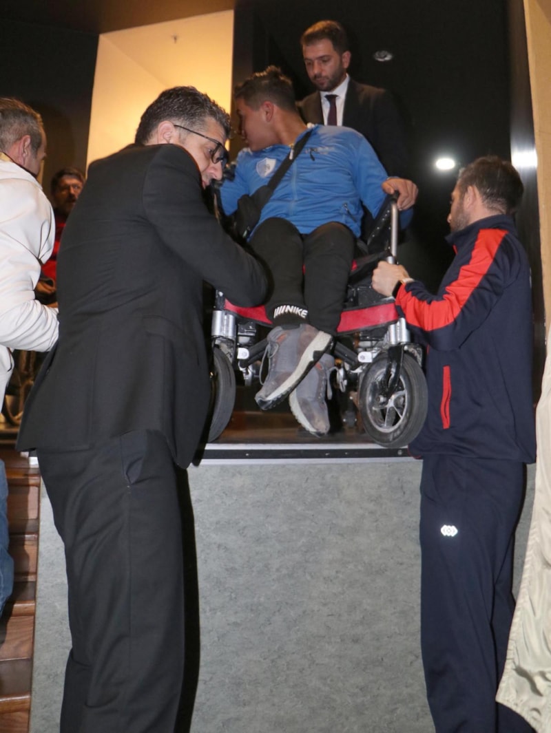 Ödüllerini alan Seven ve Gürgen, sahneden inerken de zorluk yaşadı. Arka bölümdeki kulis merdivenine tekerlekli sandalyeleriyle gelen sporcular, yine arkadaşlarının yardımıyla inebildi.