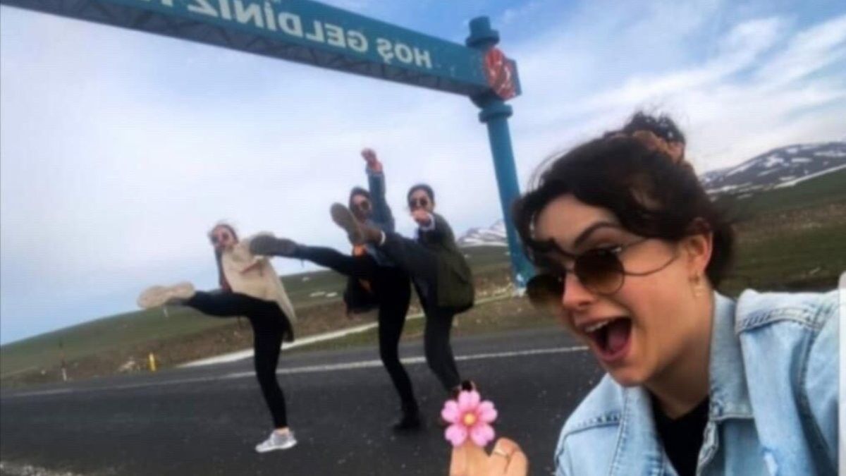İlçede görev yapan 4 öğretmen, ilçe girişindeki Kürtçe ve Türkçe ile ‘Hoş geldiniz’ yazan tabela önünde fotoğraf çektirdi.
