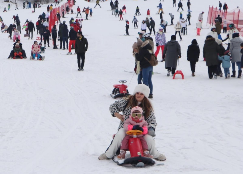 25 kilometre uzaklıktaki Konaklı Kayak Merkezi ile birlikte 55 kayak pisti bulunan ve aynı anda 40 bin kişinin rahatlıkla kayak yapabildiği Palandöken'de kayak ve snowboard yapmasını bilmeyenler ise kızakla kayıyor.